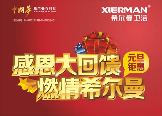 元旦將至,為感謝新老客戶一直以來對希爾曼衛浴的觀注與支持,公司特別推出主題為“感恩大回饋,燃情希爾曼”的年終特別活動。讓廣大消費者得到一份實惠,一份溫暖,一份祝福。